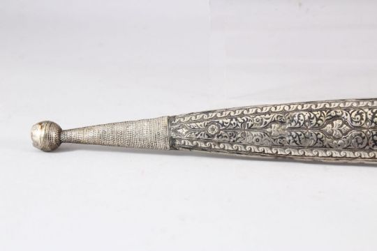 A 19TH CENTURY KINDJAL DAGGER and scabbard, 47.5cm long.