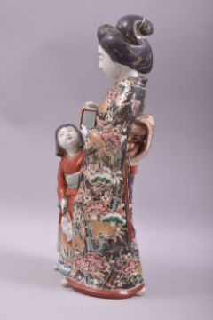 A JAPANESE KUTANI PORCELAIN GROUP, modelled as a mother and child, 37cm high.