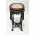 A CHINESE CARVED HARDWOOD AND MARBLE INSET VASE STAND, with pierced and carved frieze depicting cherry blossom, on four carved legs united by a stretcher, 41cm diameter, 80cm high.