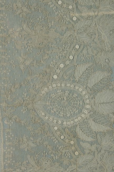 TWO FRAMED AND GLAZED WHITE LACE BORDERS.