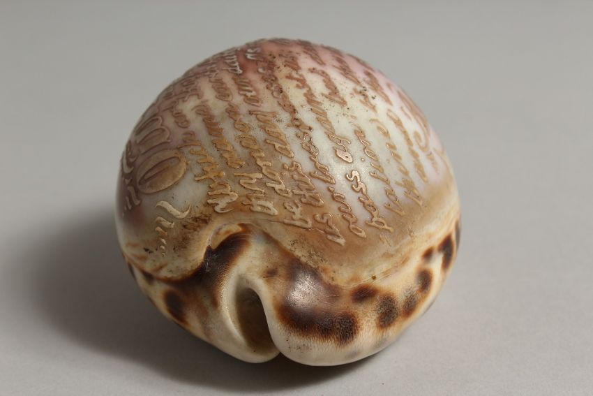 A SHELL CARVED WITH THE LORD'S PRAYER.