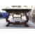2ft long x 3ft 10ins wide on a wooden base with curving legs.