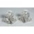 A PAIR OF HUNTING INKWELLS with foxes mask, whip etc.