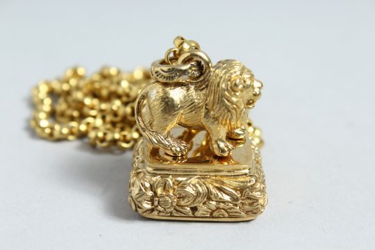 A GOLD PLATED LION SEAL ON A CHAIN