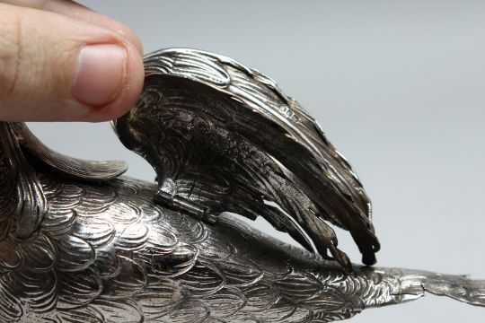 A SMALL SILVER PHEASANT with detatchable head.