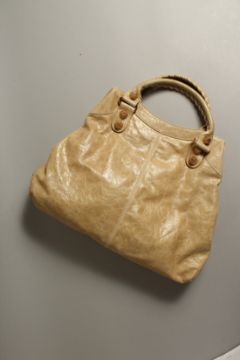 BALENCIAGA, PARIS, A LADIES BEIGE LEATHER HANDBAG.