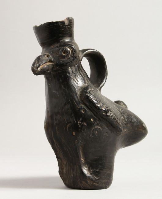 A SOUTH AMERICAN POTTERY BIRD JUG. 6.5ins high.