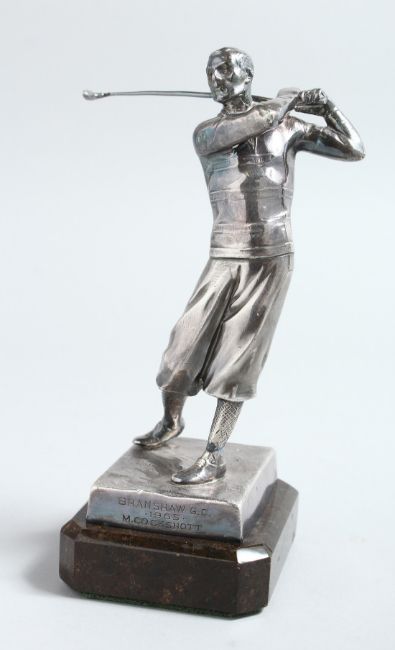 AN ART DECO SILVER PLATED GROUP on a marble base.