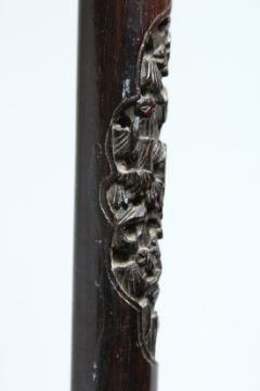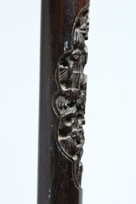 A JAPANESE SILVER-HANDLED WALKING STICK with Chinese design carved rosewood shaft.