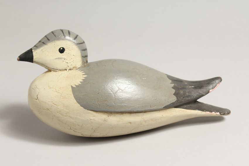 A PAINTED WOODEN BIRD. 9ins long.