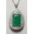 A SUPERB 18CT WHITE GOLD PENDANT set with a large emerald surrounded by a diamond.