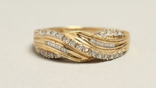 A 14CT GOLD AND DIAMOND CROSS OVER RING
