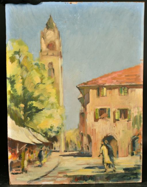 20/21st Century, Continental Street scene, oil on canvas, 24" x 18", (unframed).