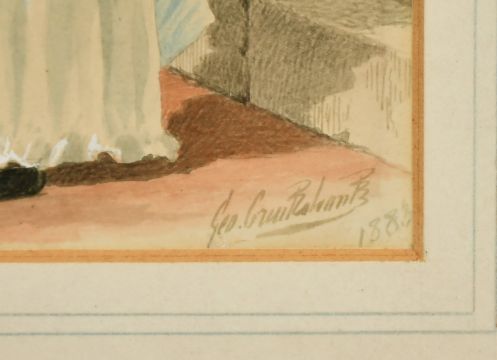 George Cruickshank (1842-1910) British, a young girl with a saucer of milk for her cat, watercolour, signed and dated 1888, 6.75" x 4.75".