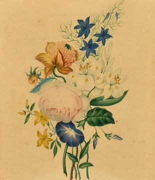 A 19th Century Study of mixed flowers, watercolour, 8" x 6.5", in a rosewood frame.
