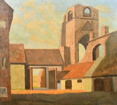Early 20th Century, 'Morning time over Rome', oil on board, indistinctly signed and titled verso, 19.5" x 27", along with another by Gerald Grudgings of Ulverscroft Priory, oil on panel, signed and dated, 20" x 22", (2).