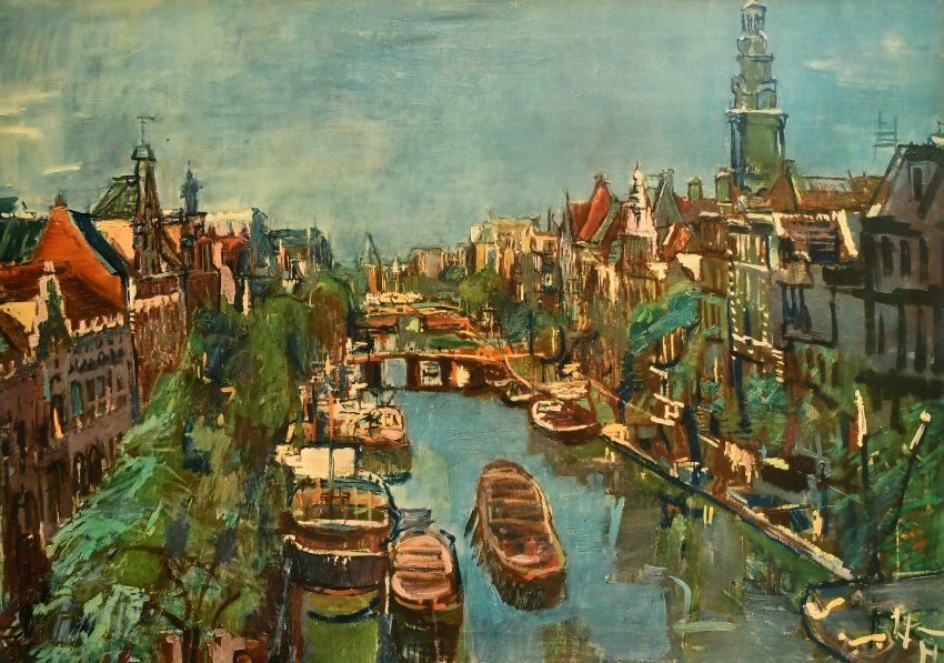 After Oskar Kokoschka (1886-1980) Austrian, 'Amsterdam', lithograph, trade label verso, The Zwemmer Gallery, London, 24" x 33".