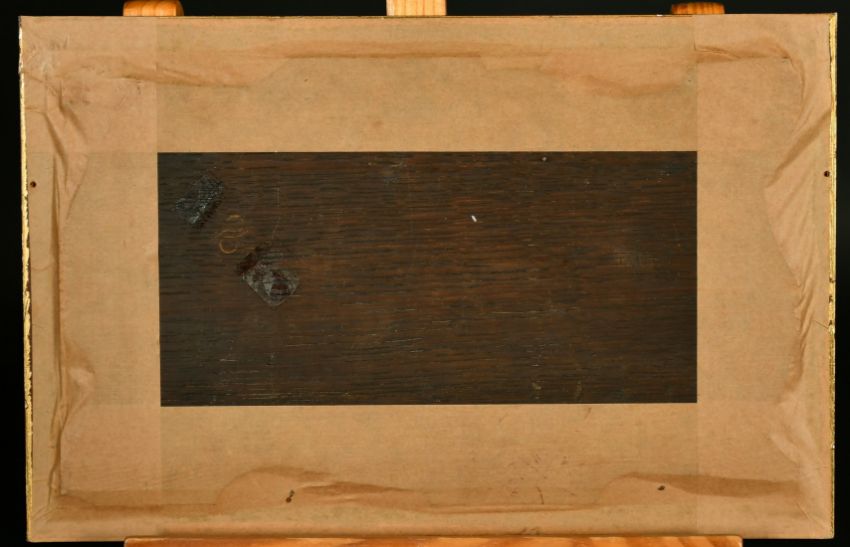 19th Century School, figures gathered by fishing boats, oil on oak panel, 6" x 10".