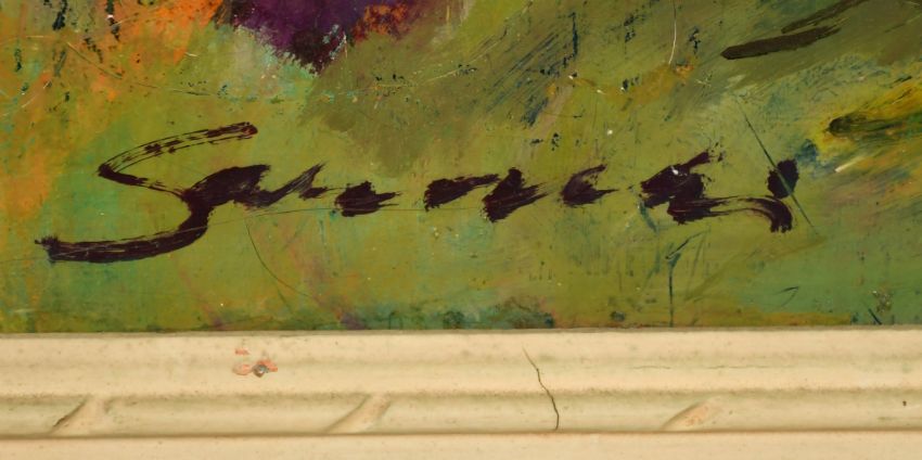 20th Century, still life of colourful flowers, oil on canvas, indistinctly signed, Christie's stamp verso, 25" x 30".