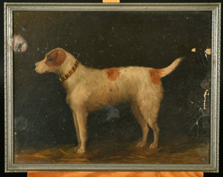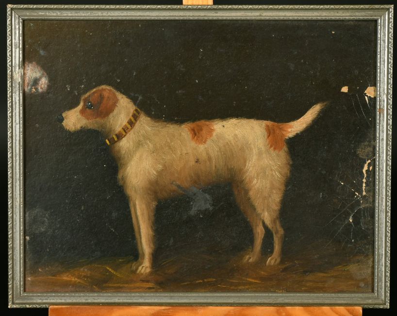 Late 19th Century English School, a study of a terrier, oil on board, 8" x 10".