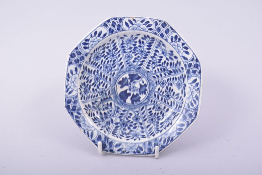 SIX CHINESE BLUE AND WHITE PORCELAIN ITEMS, comprising five small dishes and one tea bowl, (af), (6).