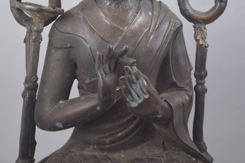 A LARGE AND IMPRESSIVE BRONZE SEATED BUDDHA, 82cm high.