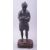 A JAPANESE MEIJI PERIOD BRONZE OKIMONO of a man holding a pipe, mounted to a carved hardwood base, 36.5cm high.