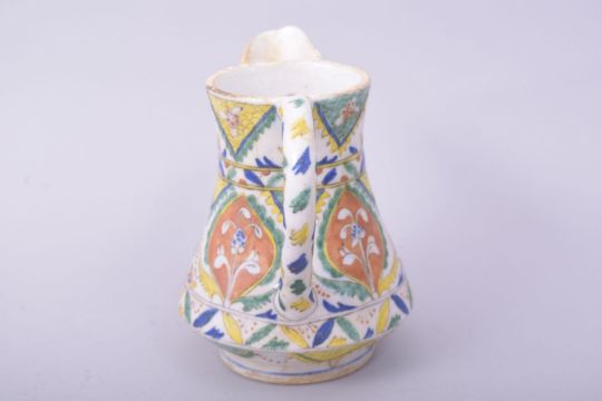 A TURKISH OTTOMAN KUTAHYA COFFEE POT, painted with foliate motifs, 13cm high.