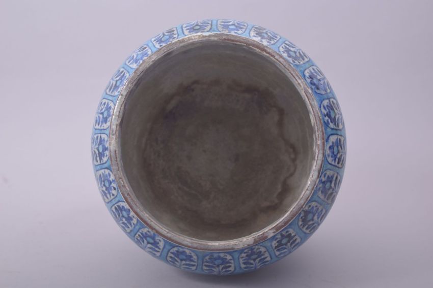 A FINE 19TH CENTURY MULTAN POTTERY VASE, painted with large flower heads and other foliate motifs, 19cm high.