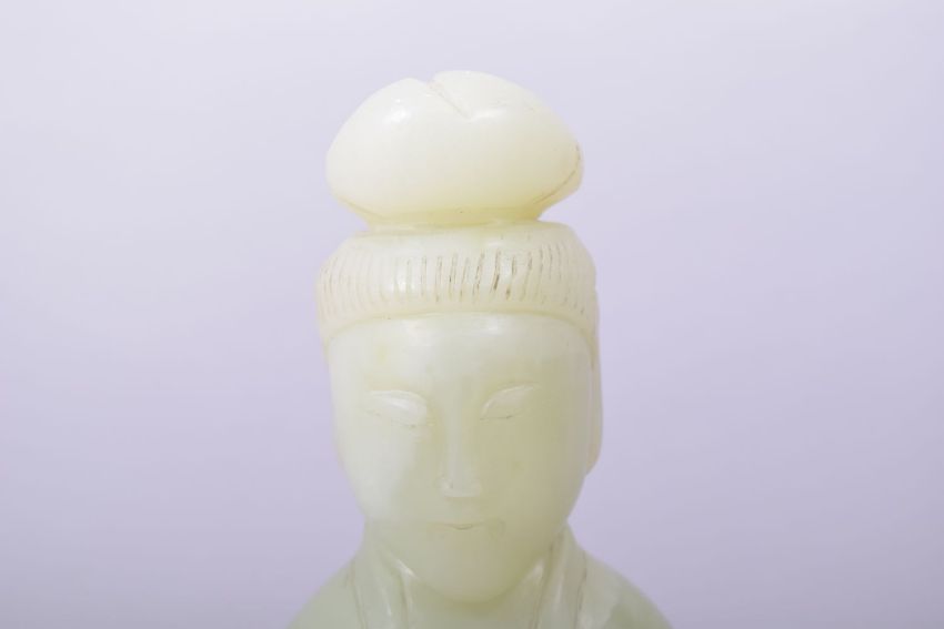 A LARGE CHINESE CARVED JADE STANDING FEMALE FIGURE, 29cm high