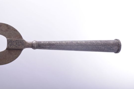 A LARGE 19TH CENTURY INDO PERSIAN SILVER INLAID STEEL SPEAR HEAD, 45cm long.