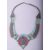 A TURQUOISE AND CORAL INSET WHITE METAL NECKLACE.