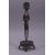 A PAIR OF JAPANESE BRONZE FIGURAL CANDLESTICKS, each formed as a male figure upon a base with arms raised supporting the candle cup, both approx. 28cm high.