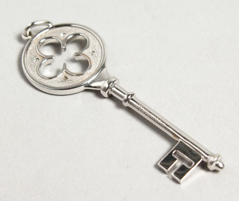 A TIFFANY WHITE GOLD DIAMOND SET KEY.