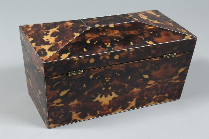 A FAUX TORTOISESHELL TWO DIVISION TEA CADDY