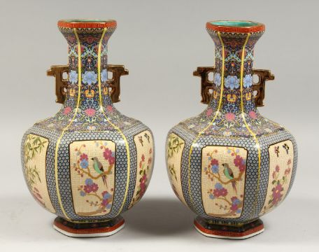 A PAIR OF CHINESE PORCELAIN HEXAGONAL VASES