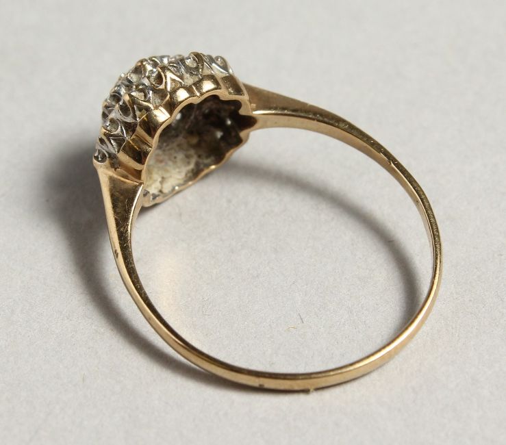 A 9CT GOLD DIAMOND CLUSTER RING.
