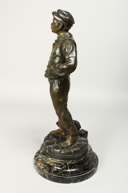 A GOOD 19TH CENTURY FRENCH BRONZE FIGURE OF A YOUNG BOY WHISTLING on circular base.