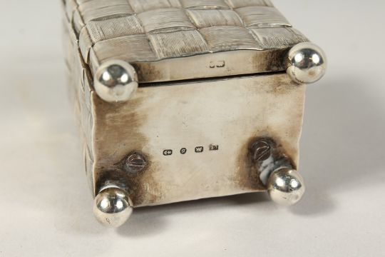 A MINIATURE VICTORIAN SILVER CASED CLOCK with carrying handles on four ball feet.