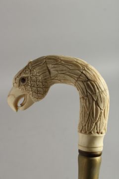 A WALKING STICK with carved bone handle 'Eagle head'.