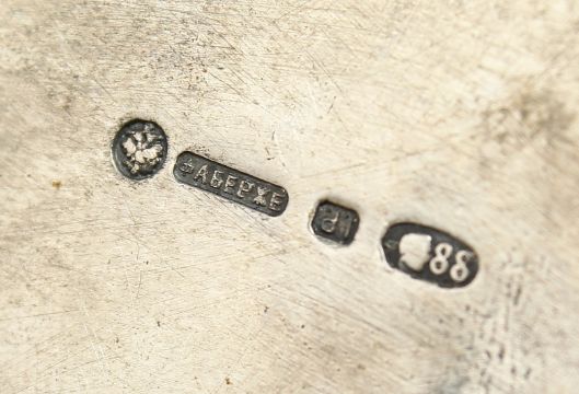 Marks: Eagle, Faberge mark, I.P. Head 88