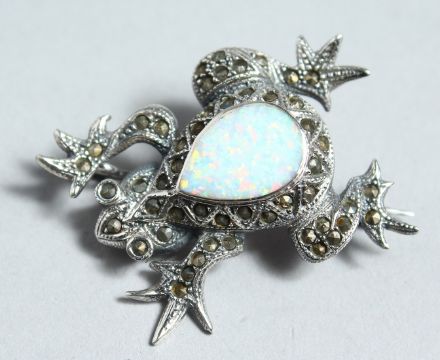 A SILVER FROG BROOCH.