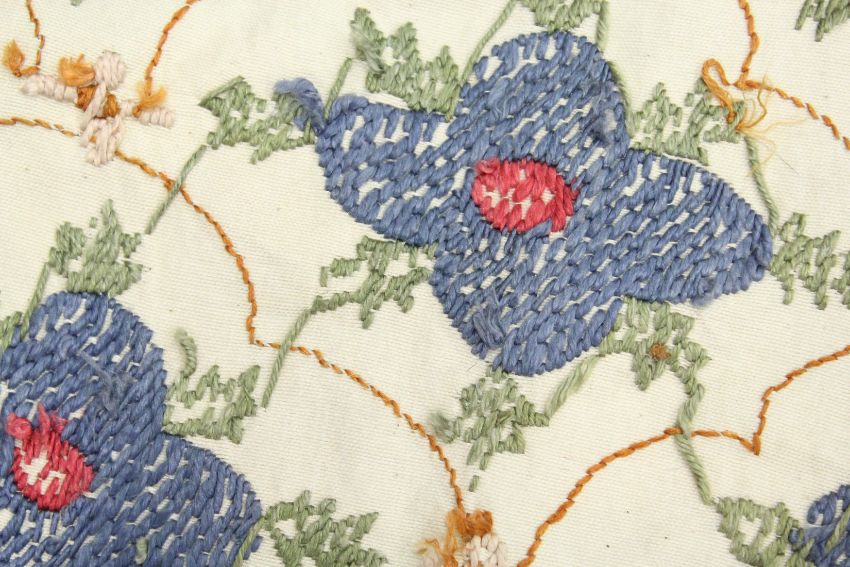 AN ISLAMIC EMBROIDERED TEXTILE, possibly Persian / Susani, cream ground with all over flower head design.