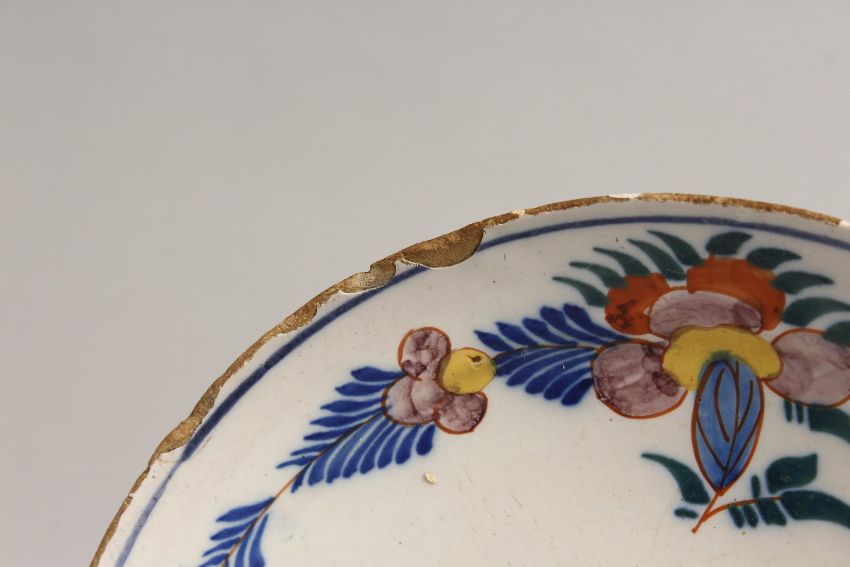 A PAIR OF 18TH CENTURY DUTCH DELFT TIN GLAZED PLATES with coloured enamels.