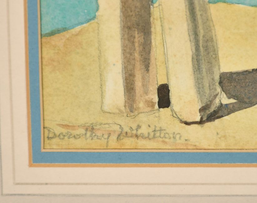 Dorothy Whitton, Boats by a quayside with a red topped lighthouse on a point beyond, watercolour, 10.75" x 14.5" signed in pencil, and a watercolour of Cornwall, boats and seagull by another hand, inscribed and dated May 1961 verso, 7" x 10", (unframed) (2).