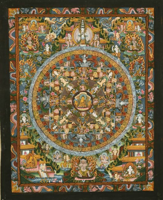 South Asian School (20th Century) A Thanka, gouache on fabric laid on board, 13.75" x 11". (unframed).