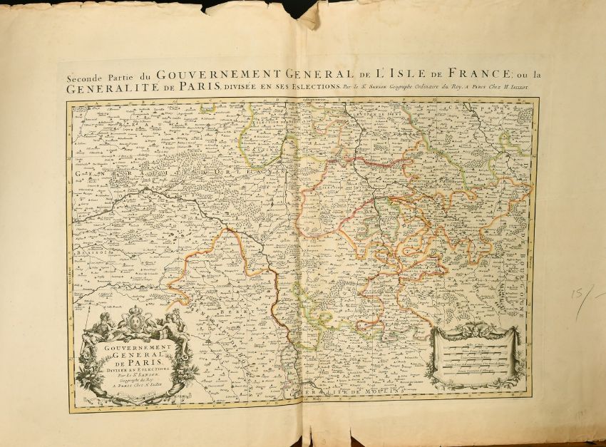 Alexis-Hubert Jaillot, 'Le Gouvernement General de Picardie' and 'Le Gouvernement General de L'Isle de France', two 17th/18th Century outline-coloured maps, 24" x 38", (unframed) (2).