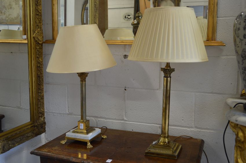 Two Corinthian column style table lamps.