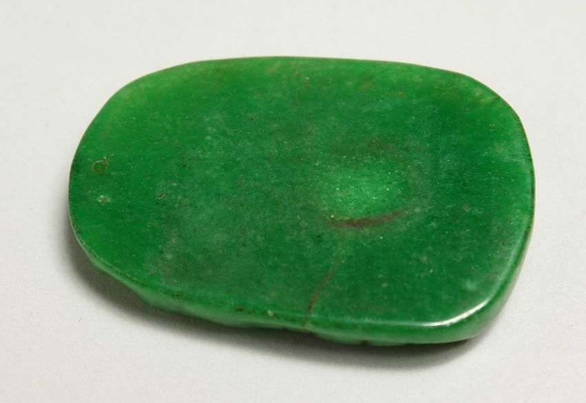 A CHINESE CARVED JADE DRAGON PENDANT, 6cm.
