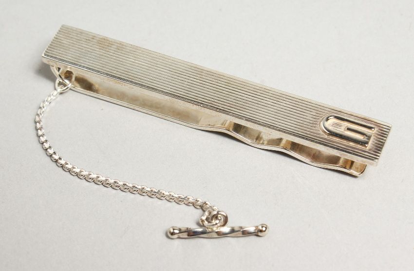 A GUCCI .925 SILVER TIE CLIP in a velvet purse and black box.